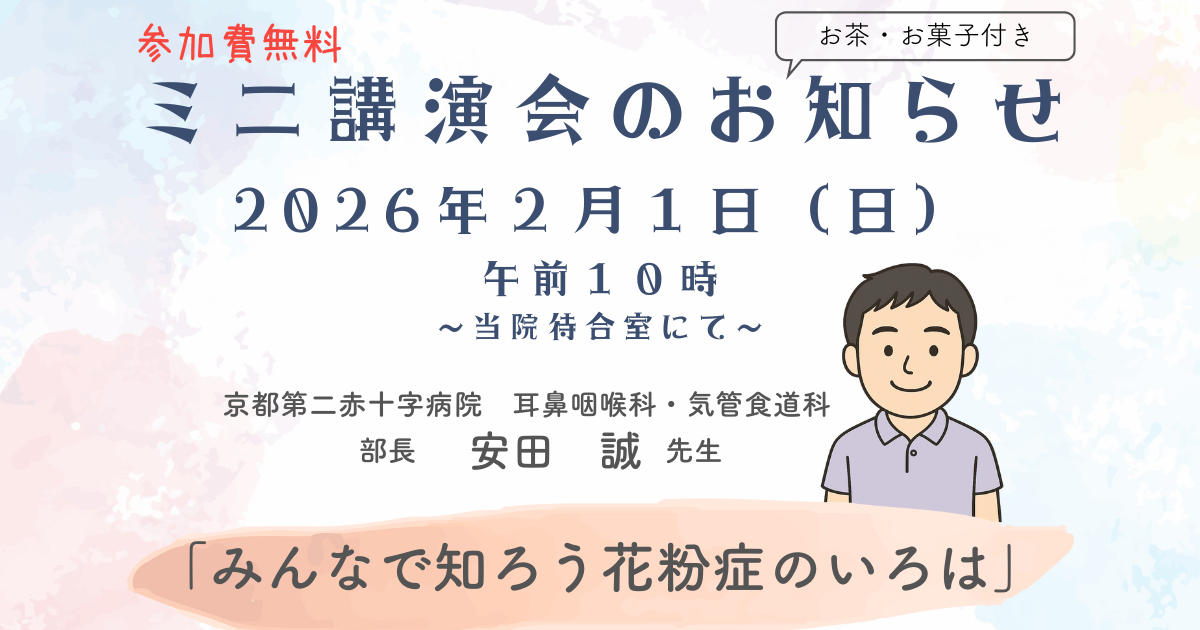 「ミニ講演会」のご案内〜当院待合室にて:京都第二赤十字病院 耳鼻咽喉科・気管食道科部長 安田 誠先生